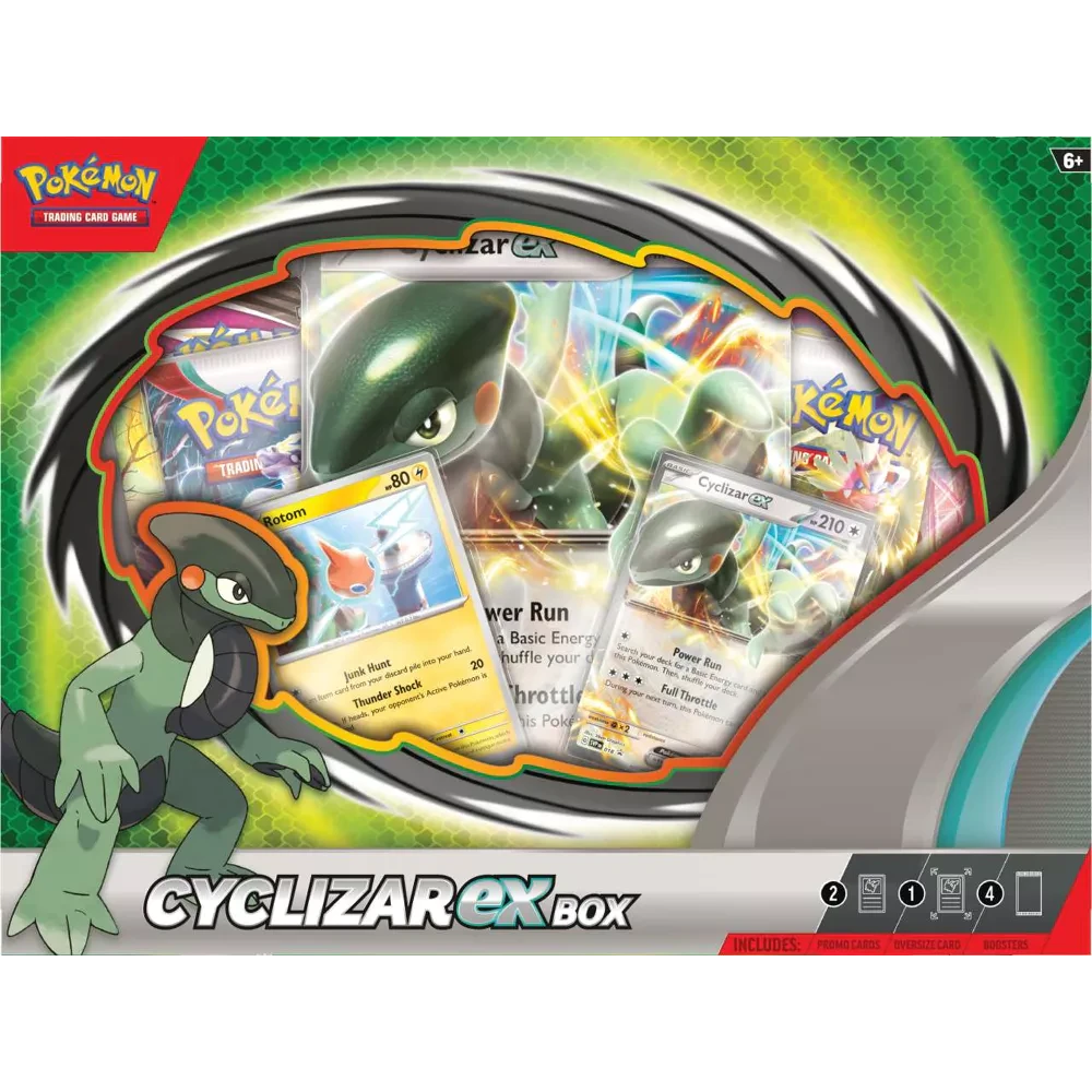 Cyclizar ex Box – Pokémon TCG: Enter your next Pokémon TCG match with the support of Cyclizar ex! The helpful Mount Pokémon is ready to roll onto the battlefield with his cunning Power Run attack. This lets you deal damage and search your deck for base energy to attach to Cyclizar ex. When you’re ready to deliver the final blow, use Full Throttle and deal major damage! You’ll also find a handy foil card with Rotom and 4 booster packs to add to your collection.