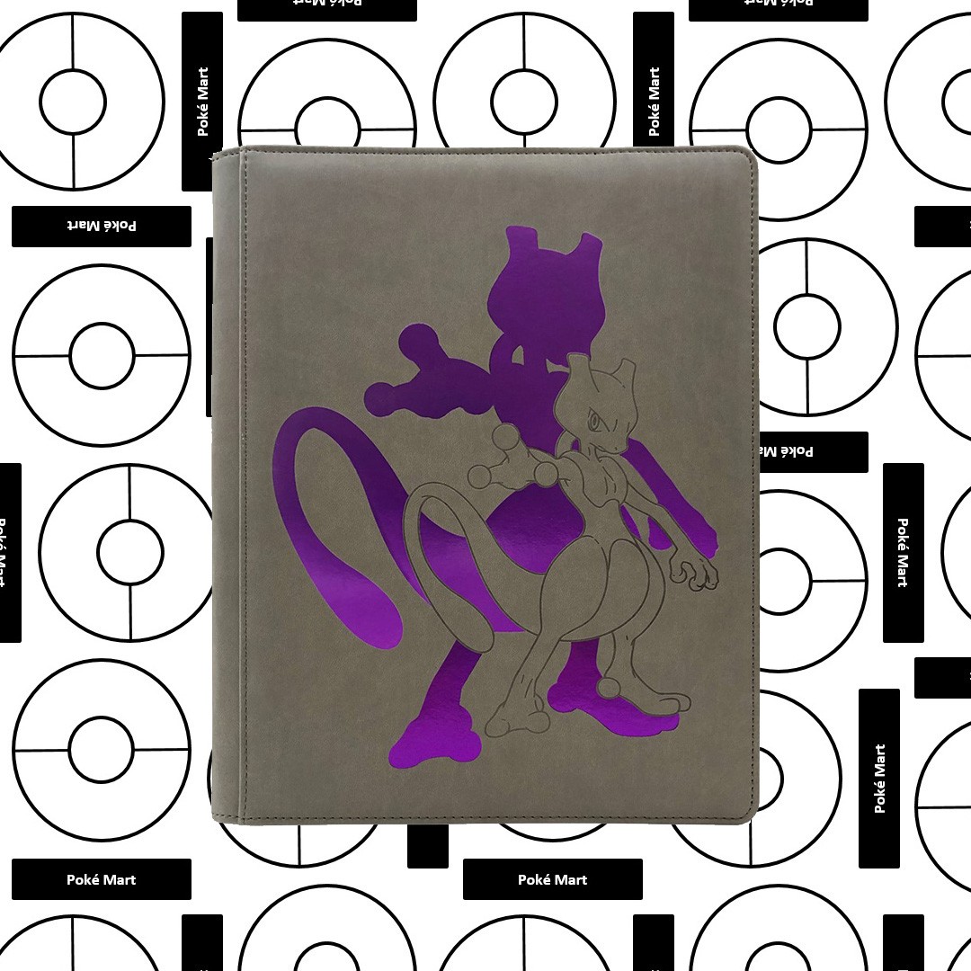 Become a legend with one of the most iconic legendary Pokémon of all time. The Mewtwo Premium 9-Pocket PRO-Binder features an embossed image of the character over a purple foil silhouette on a premium, padded faux leather.