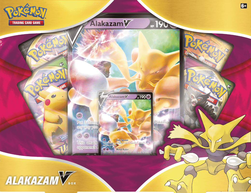 Pokémon TCG: Alakazam V Box: With powerful psychic powers and a pair of shiny spoons, Alakazam V can outwit his opponents on the battlefield!